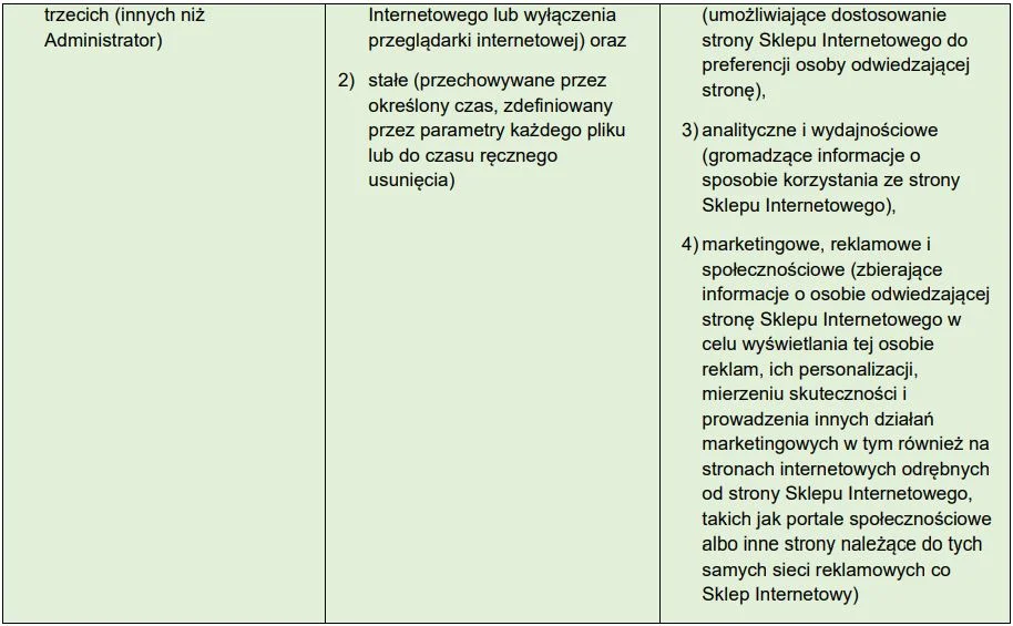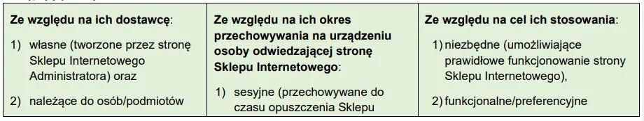 7.2. Pliki Cookies, które mogą być wysyłane przez stronę Sklepu Internetowego można podzielić na różne rodzaje, według