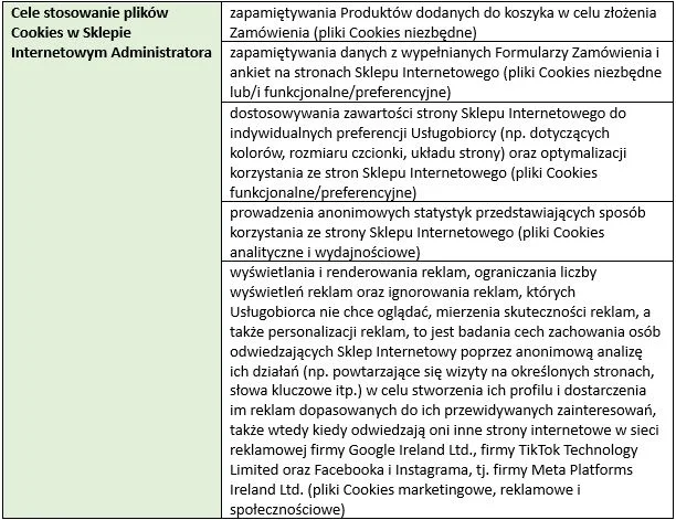 stosowania w Sklepie Internetowym plików Cookies oraz narzędzi analitycznych.