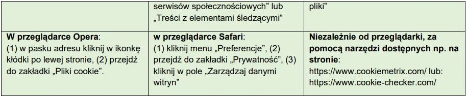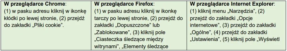 ustawienia przeglądarki internetowej. Szczegółowe informacje na temat zmiany ustawień dotyczących plików Cookies