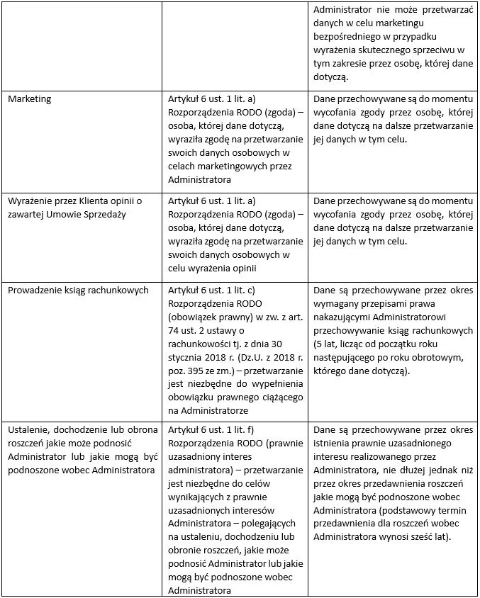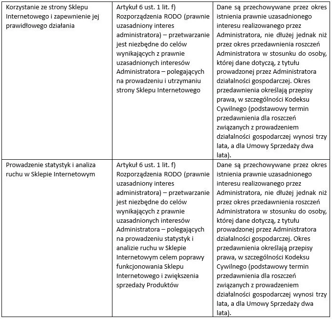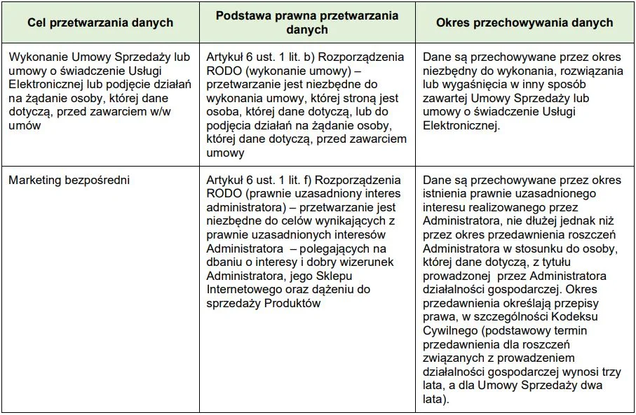 3. CEL, PODSTAWA I OKRES PRZETWARZANIA DANYCH W SKLEPIE INTERNETOWYM